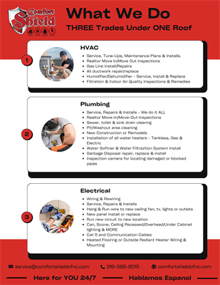 At Comfort Shield, we proudly serve Smithfield and surrounding areas with HVAC, plumbing, and electrical services. Whether you need repairs, maintenance, or a full system replacement, our team is here to help keep your home running smoothly.